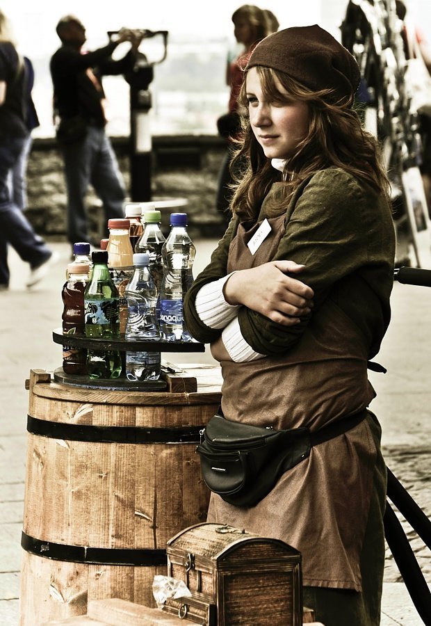 А ты бы смог стоять целый день на ветру, разодетый в клоуна? Аня (если верить бейджику) может.